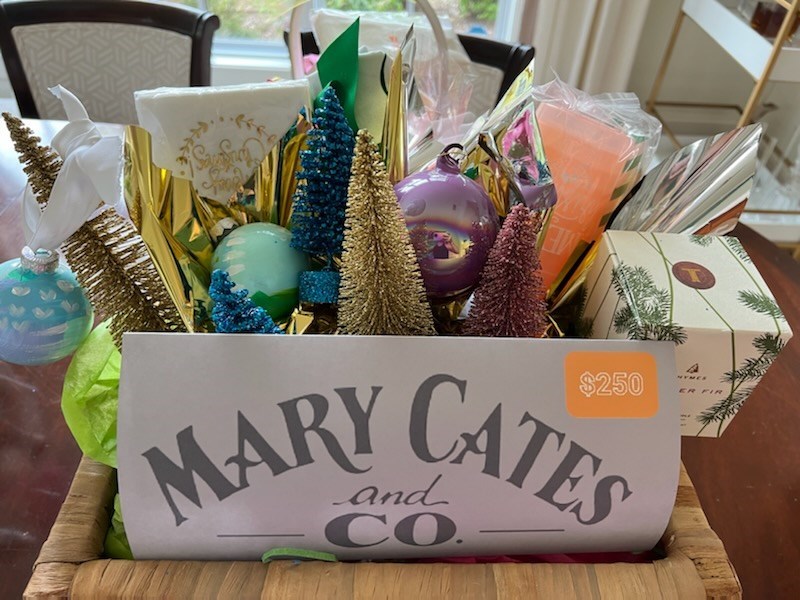 Mary Cates and Co Gift Card - $250 2 Katherine Plummer Art Ornaments Thymes Frasier Fir Candle Purple Mary Cates Ornament Christmas Cups 5 Bottle Brush Trees Hand towel Guest napkins